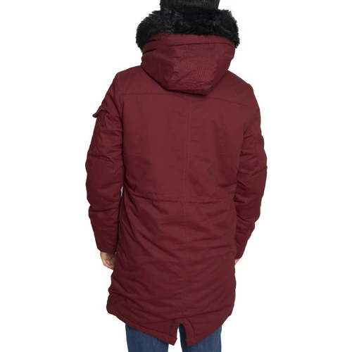 Canadienne Capuche avec bord façon fourrure Fermeture zippée + bouton pression à l’avant 2 poches sur la poitrine 2 poches à rabat pressionné à l’avant 2 poches zippées à l’avant 1 poche zippée sur une manche Logo brodé sur la poitrine Logo brodé sur une manche