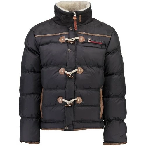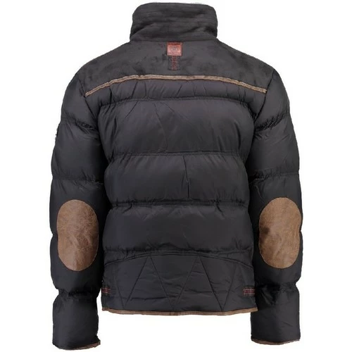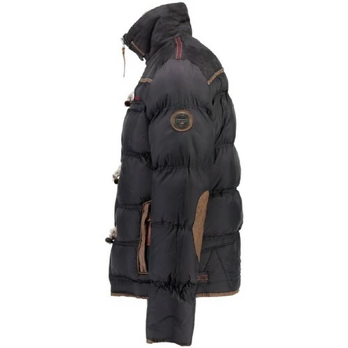 Doudoune Geographical Norway Garçon Aviel avec fermeture zippée, boutonnée et avec pate de resserage. Ce blouson matelassé Geographical Norway possède une col montant intérieur sherpa (fourrure synthétique), des empiècements de synthétique. Deux poches zippées sont également présentes sur le devant ainsi que des protections de coudes, une broderie présente sur la poche zippée de la poitrine et un badge métalique sur la manche gauche.