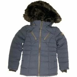 Doudoune Fille Geographical Norway Chic. Cette Doudoune pour Fille possède un grand col montant ainsi qu’une capuche bordée d’une élégante fourrure synthétique. Elle présente une ouverture intégrale (zip injecté) sur le devant du vêtement ainsi que deux poches sur les côtés et sur la poitrine. Il y a également un badge PVC sur la manche gauche .
