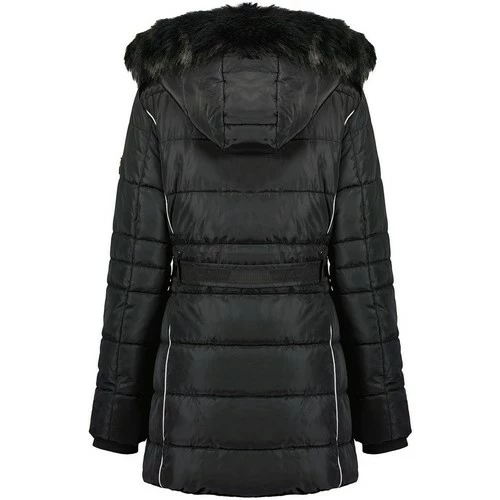 Doudoune longue Femme GeoNorway Becky. Cette longue Doudoune pour Femme possède un col montant fourré et tout douillet ainsi qu’une capuche amovible fourrée et bordée de fourrure synthétique. Elle présente une ouverture intégrale double, zippée et boutons pression, sur le devant du vêtement ainsi que deux poches zippées. Il y a également une ceinture de serrage à la taille et un badge métallique sur la manche gauche.