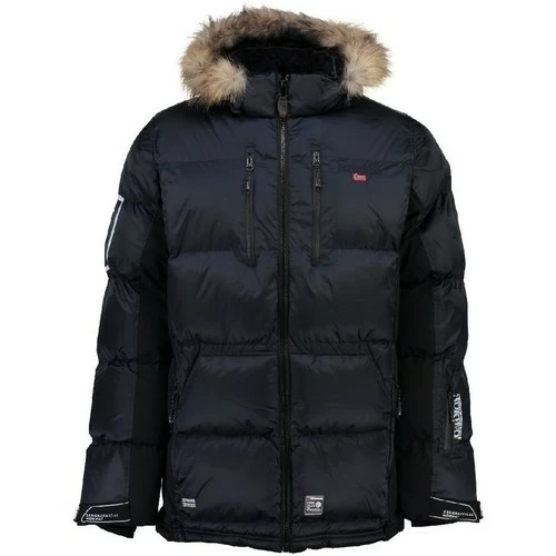 Doudoune Homme Geographical Norway Danone. Cette Doudoune possède une capuche amovible avec une jolie fourrure synthétique et une fermeture zippée sur le devant. La Doudoune présente 2 poches zippées sur la poitrine ainsi que des broderies et un badge PVC sur la manche.