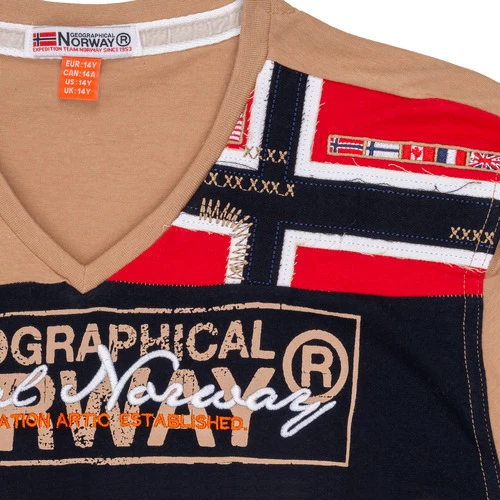 Les T-shirts à manches courtes sont à l’été ce que les pulls sont à l’hiver et ce n’est pas Geographical Norway qui dira le contraire ! Avec une conception en coton (100%) de couleur beige, ce modèle n’a pas son pareil. Voilà de quoi faire aimer la mode à nos petits loups !
