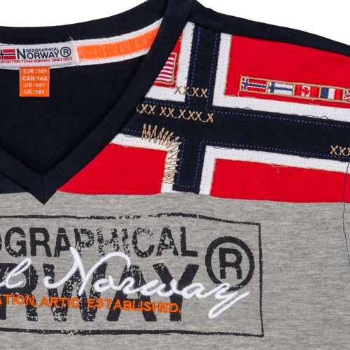Jamais sans mon T-shirt à manches courtes Geographical Norway !’ Voilà ce que pourraient dire nos enfants. Confection en coton (100%) et coloris bleu font de ce modèle un incontournable. Nos petits monstres l’adoreront !
