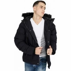 Parka Capuche avec bord façon fourrure Fermeture zippée + bouton pression Poche à rabat à l’avant Logo piqué