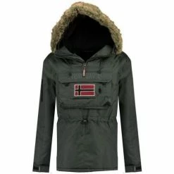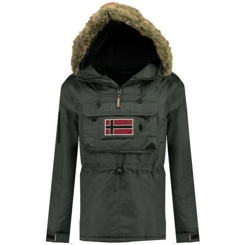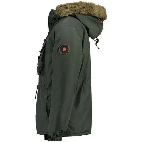 Parka passe-tête Homme Geographical Norway Barbier New. Cette Parka passe-tête possède un demi-zip, une capuche fixe possédant une fourrure synthétique amovible. Une poche à rabat brodée est plaquée sur le devant. Les poignets sont réglables. Sur la manche se présentent une poche plaquée et un badge PVC. Une ouverture zippée se situe également sur le côté.
