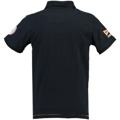 Polo manches courtes Enfant Geographical Norway Komen avec col boutonné. Il apparaît sur ce polo Geographical Norway des animations sur la poitrine et un badge brodé sur chaque manche.