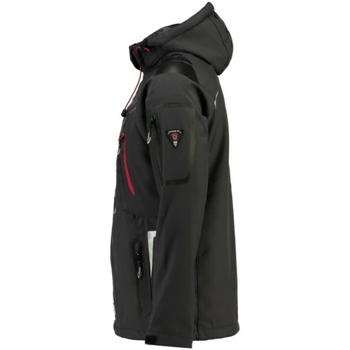 Softshell Homme Geographical Norway Techno New. Cette Softshell possède une capuche amovible et ajustable ainsi que 2 poches zippées sur la poitrine. Elle présente des impressions sur le devant, la capuche et les épaules ainsi qu’un badge PVC et une poche zippée sur la manche.