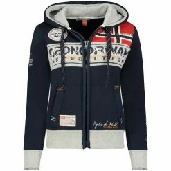 Sweat femme à capuche Geo Norway Flyer. Ce Sweat fashion possède une fermeture zippée, deux poches kangourou et une impression principale ‘Geo Norway’ et un drapeau norvégien. Des écussons et diverses impressions sur le bras et au dos.