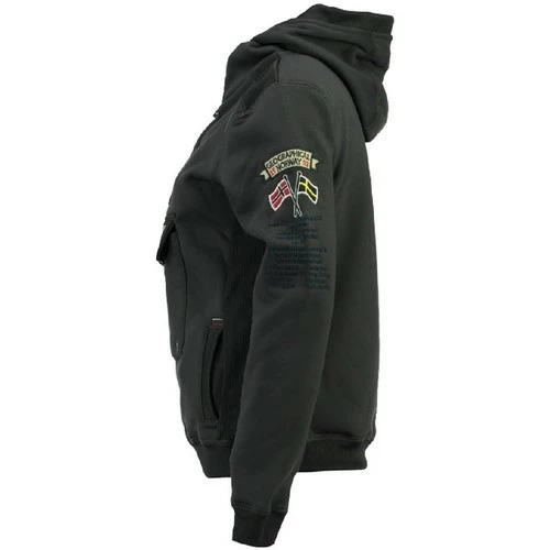 Sweat Homme à capuche Geographical Norway Gymclass New. Ce Sweat fashion possède sur le col une fermeture zippée, une poche kangourou et une poche centrale à scratch avec broderie Geographical Norway. De multiples broderies sont présentes sur les manches.