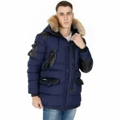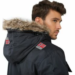 Geographical Norway Anorak Bantouna – capuche avec bord façon fourrure Manteaux Couleur Bleu marine