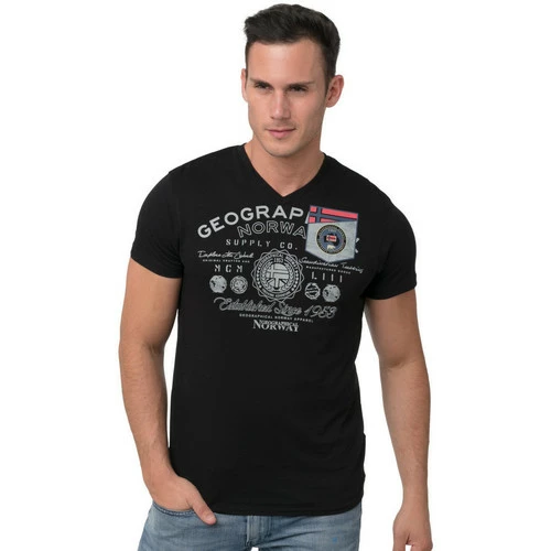 Geographical Norway T-shirt – col V – imprimé T-shirts & Polos Couleur Noir