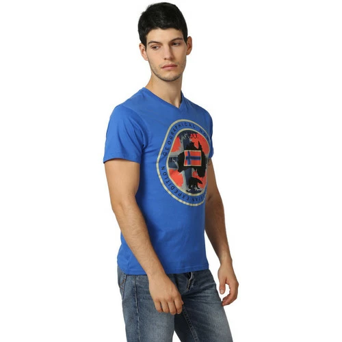 Geographical Norway T-shirt – col V T-shirts & Polos Couleur Bleu