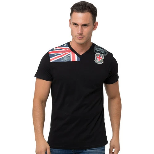 Geographical Norway T-shirt – col V T-shirts & Polos Couleur Noir