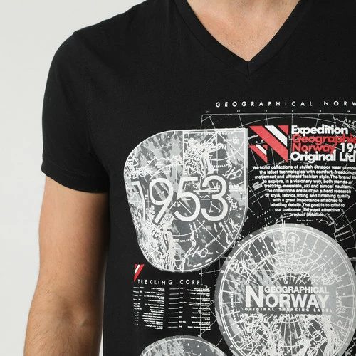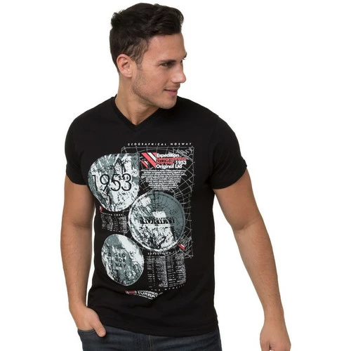 Geographical Norway T-shirt – col v T-shirts & Polos Couleur Noir