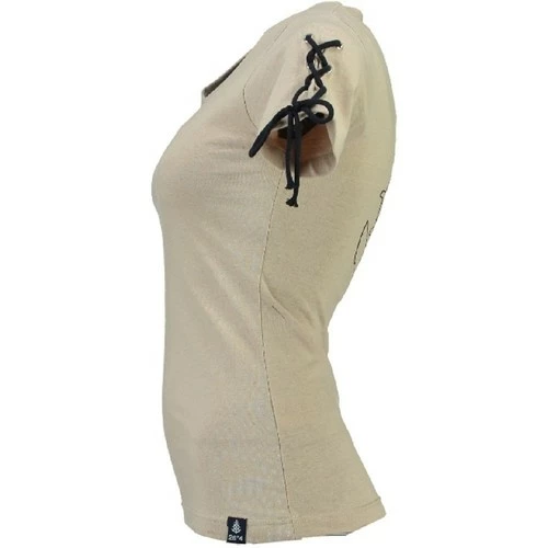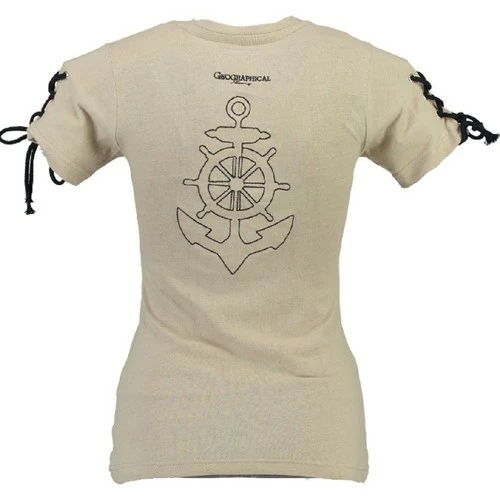 T-shirt Femme à manches courtes Geographical Norway Jeline avec col V. Ce T-shirt Geographical Norway possède un lacet sur la manche ainsi qu’une broderie dans le dos.