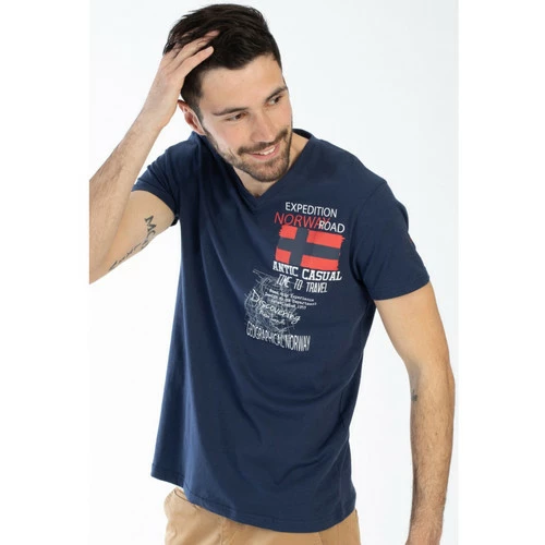 Geographical Norway T-shirt JIXI – col V – imprimé T-shirts & Polos Couleur Bleu marine