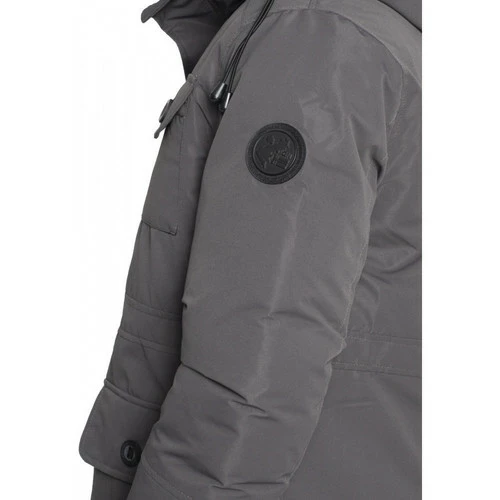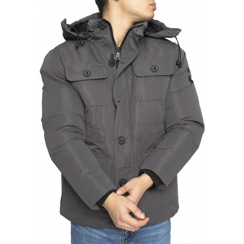 Veste matelassée Capuche amovible Fermeture zippée et boutonnée à l’avant 4 poches à rabat à l’avant Logo sur une manche