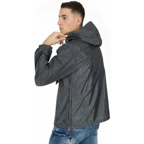 Veste – parka – coupe-vent sport « Gnchoupa » Manches longues Poignets élastiqués Capuche Col zippé Résille Uni Poches zippées Logo imprimé Fermeture zippée