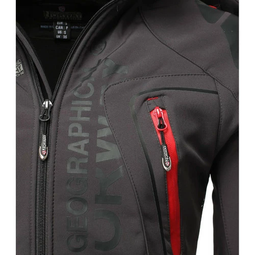 Veste softshell Geographical Norway, gris foncé La veste softshell homme de la marque Geographical Norway, coloris gris foncé. Les caractéristiques d’un blouson dit « »softshell » » : il est isolant, coupe-vent, déperlant et respirant. Intérieur en polaire au niveau du dos et doublé par un filet isolant sur l’avant pour une isolation parfaite. Il est confortable est idéal pour affronter les petites intempéries qui accompagnent l’arrivée de l’hiver. Impression sur la poitrine, ainsi que sur la manche. Un écusson Geographical Norway est aussi présent sur la manche. Un modèle basique et sobre de la marque, très agréable à porter pour vos sorties extérieures. Une veste tout confort pour homme Cette veste homme offre une capuche amovible et ajustable avec lien de serrage et scratch. La capuche peut facilement se retirer à l’aide d’une fermeture éclair. La veste possède de nombreuses poches devant et sur les manches. Deux poches zippées sont également disponibles à l’interieur de ce blouson. L’une d’elle est équipée d’une sortie écouteur, par le biais d’un trou prévu à cet effet. Scrachts présents au bas de manche pour un ajustement à votre convenance. Composition : 96% polyester 4% élasthane. Doubloure interieur 100% polyester.