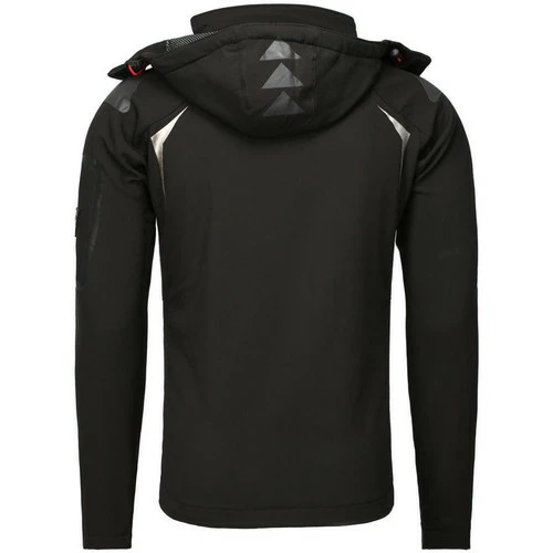 Veste Softshell Geographical Norway, noir La veste softshell pour homme de la marque Geographical Norway en coloris noir. Les caractéristiques d’un blouson dit « »softshell » » : il est isolant, coupe-vent, déperlant et respirant. Il est confortable est idéal pour affronter les petites intempéries qui accompagnent l’arrivée de l’hiver. Impression sur la poitrine, ainsi que sur la manche. Un écusson Geographical Norway est aussi présent sur la manche. Un modèle basique et sobre de la marque, très agréable à porter pour vos sorties extérieures. Une veste homme fonctionnelle Cette veste homme offre une capuche amovible et ajustable avec lien de serrage et scratch. La capuche peut facilement se retirer à l’aide d’une fermeture éclair. La veste possède de nombreuses poches devant et sur les manches. Deux poches zippées sont également disponibles à l’interieur de ce blouson. L’une d’elle est équipée d’une sortie écouteur, par le biais d’un trou prévu à cet effet. Le bords des manches offre des scratchs pour un ajustement à votre convenance. Composition : 96% polyester 4% élasthane. Doubloure interieur 100% polyester.