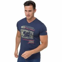 Geographical Norway T-shirt de sport – col V – 100% coton T-shirts & Polos Couleur Bleu marine