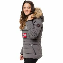 Geographical Norway Caban Camille – capuche avec bord façon fourrure Manteaux Couleur Noir charbon
